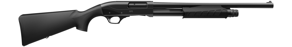 Escopeta de Bomba de un cañon marca RETAY modelo GPS X, Calibre 12, Cañon de 71 cm, Acabado sintetico negro, Cinta ventilada, con accesorios.